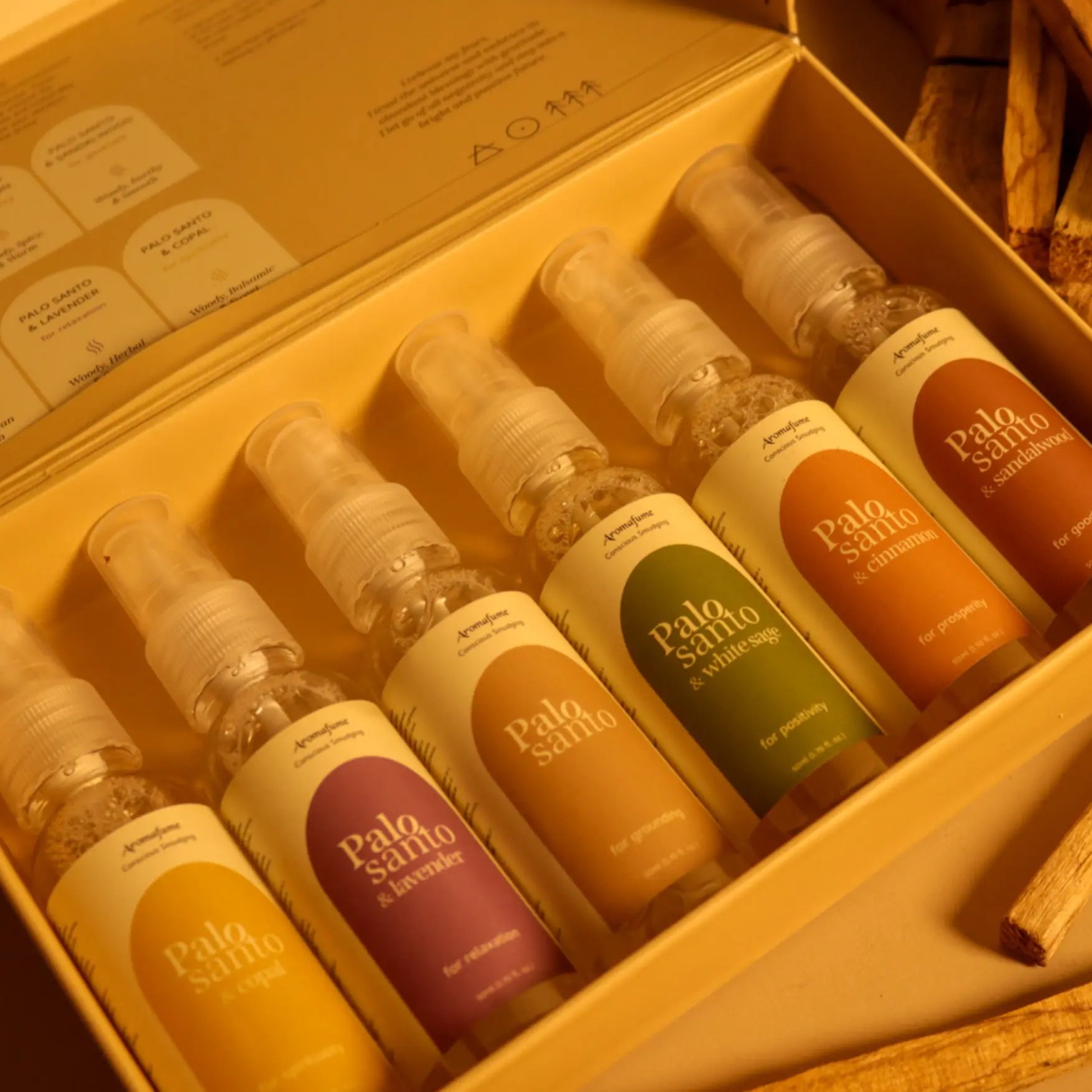 Aromafume’s Palo Santo Collection is crafted using pure, sustainably sourced Peruvian Palo Santo, blended to enhance meditation, focus, and creativity. Each product is designed to invite positivity, calmness, confidence, and spiritual renewal into your space.